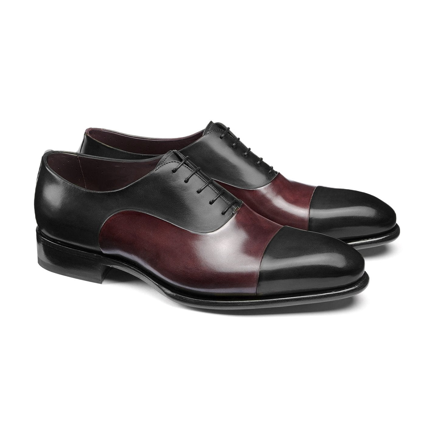 Flat Feet Shoes - Black and Wine Burgundy Brown Leather Woodford Balmoral Toe Cap Oxfords with Arch Support