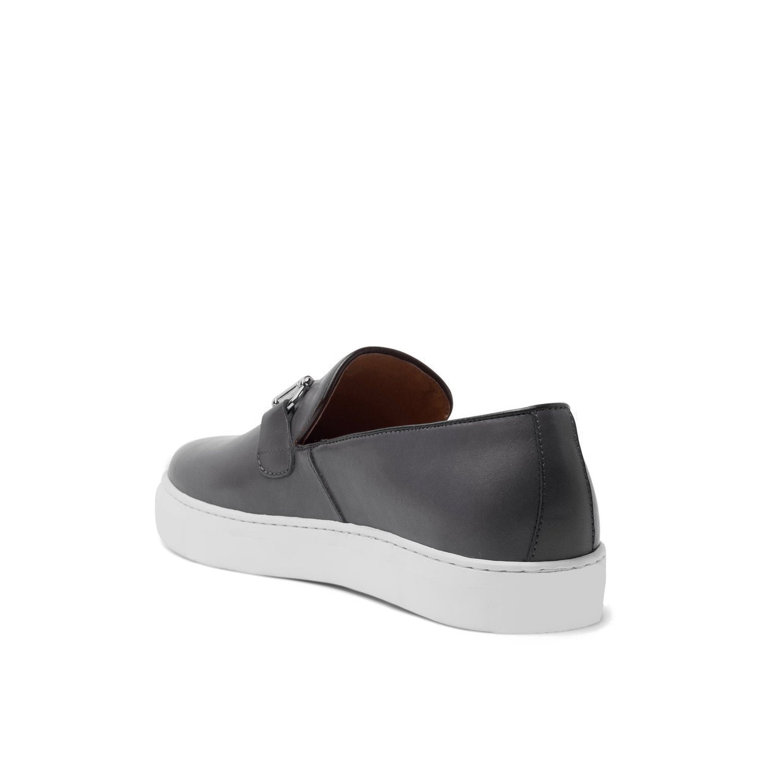 Height Increasing Black Leather Alvin Horse Bit Slip On Sneakers