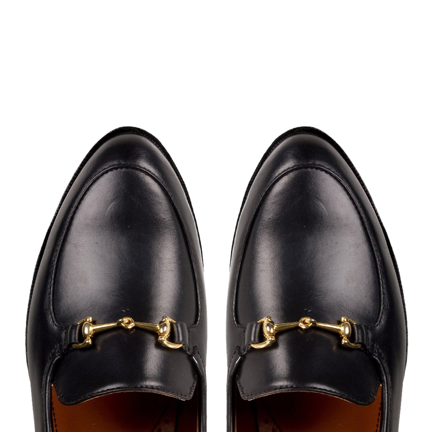 Flat Feet Shoes - Black Leather Penela Horsebit Collapsible Loafer Slippers with Arch Support