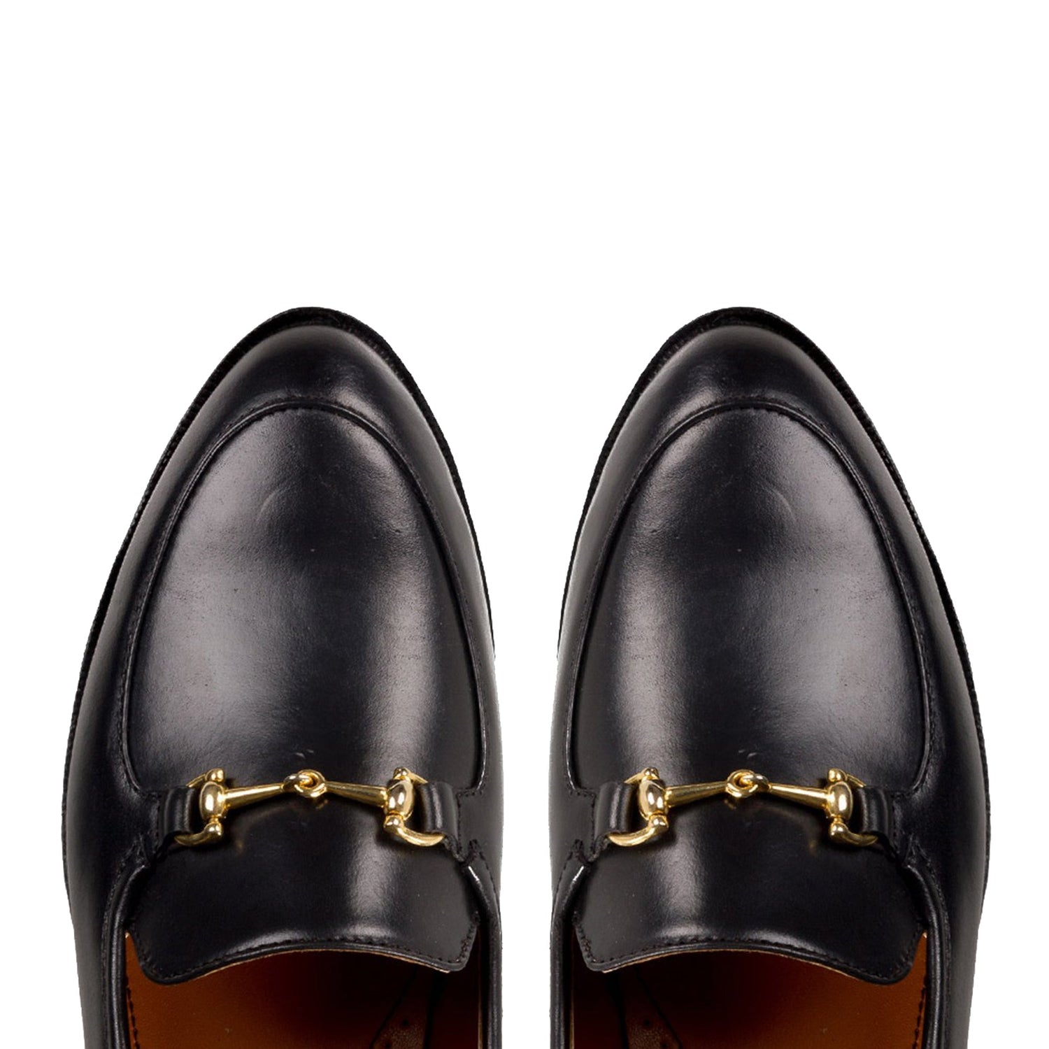 Height Increasing Black Leather Penela Horsebit Collapsible Loafer Slippers