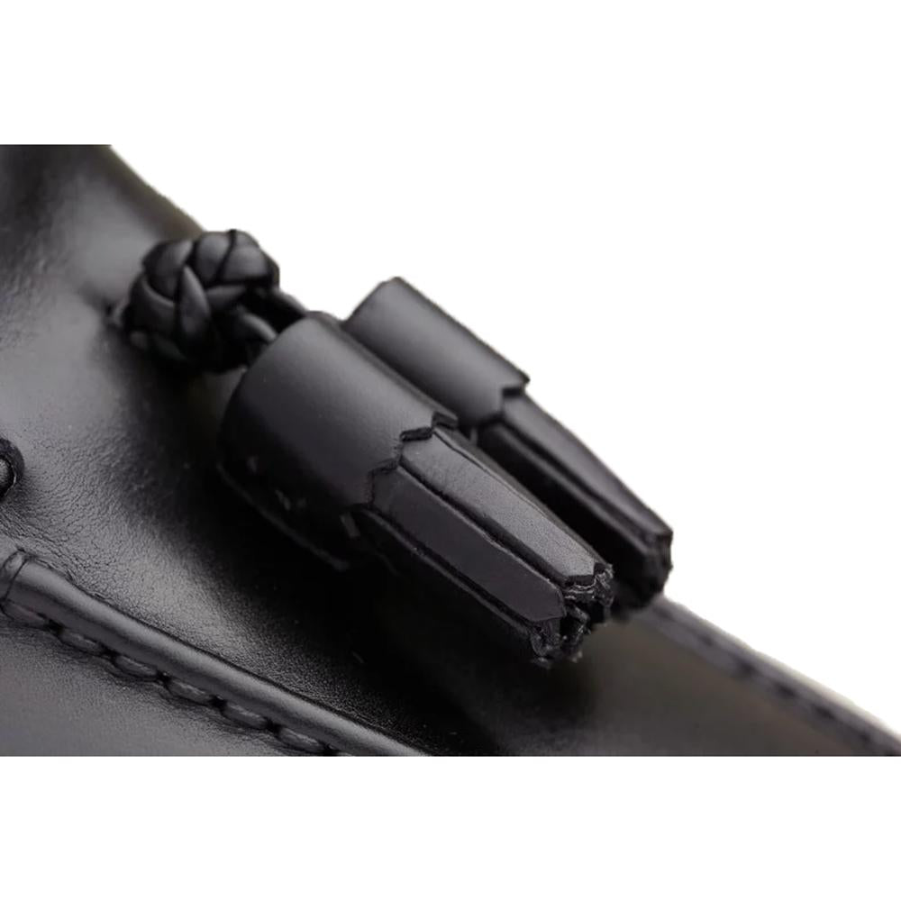 Flat Feet Shoes - Black Leather Swale Tassel Loafers with Arch Support