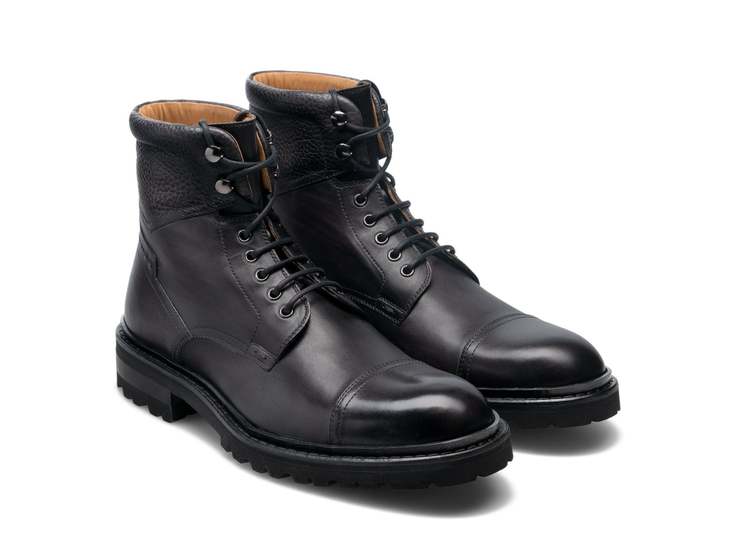 Height Increasing Black Leather Travis Chunky Hiking Toe Cap Derby Boots