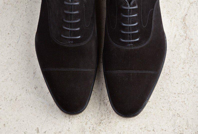 Flat Feet Shoes - Black Suede Waltham Toe Cap Oxfords with Arch Support