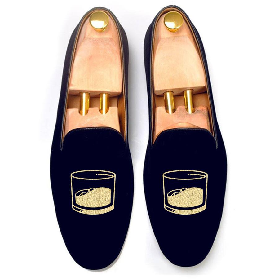 Flat Feet Shoes - Blue Velvet Scotch Embroidered Loafers with Arch Support