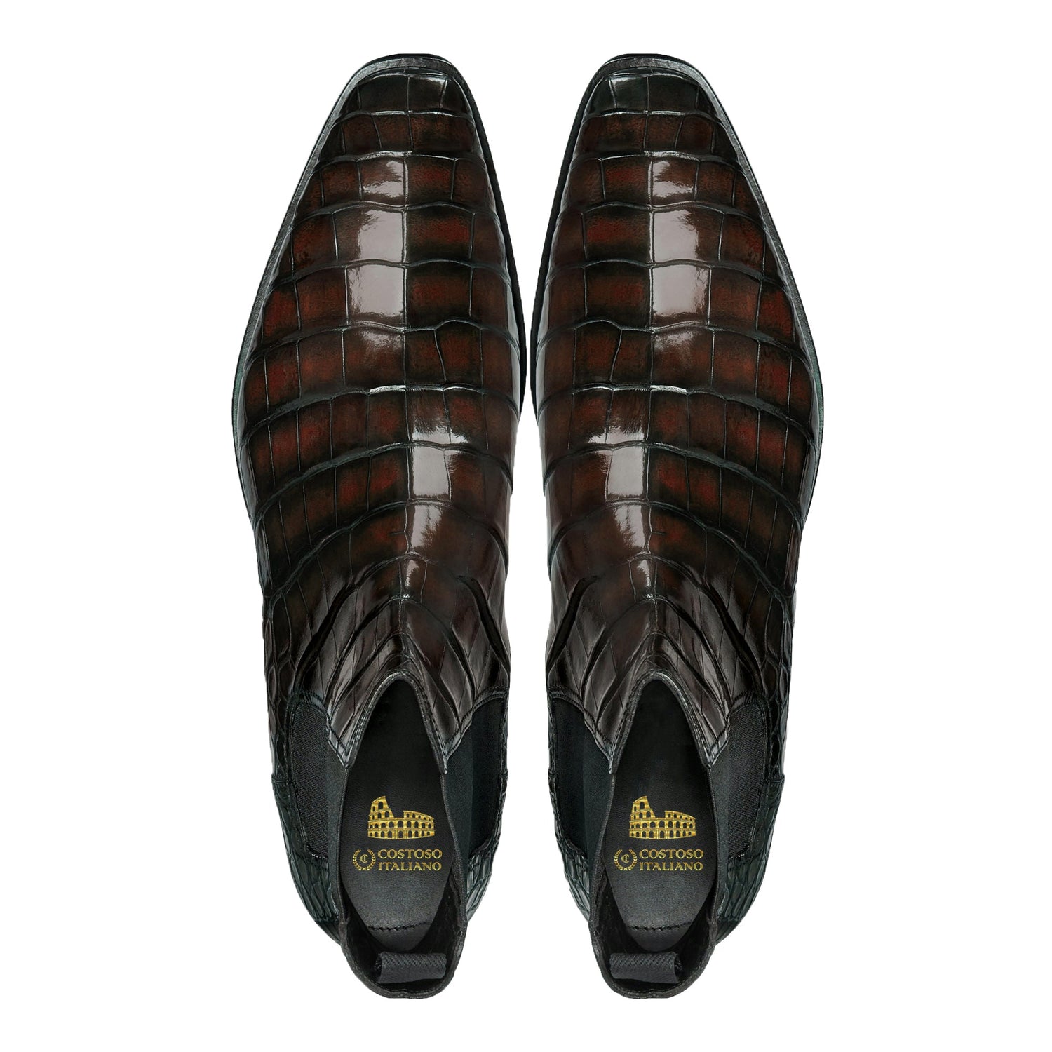 Brown Alligator Textured Leather Evington Chelsea Slip On Boots