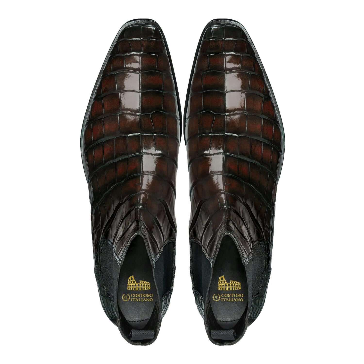 Flat Feet Shoes - Brown Alligator Textured Leather Evington Chelsea Slip On Boots with Arch Support