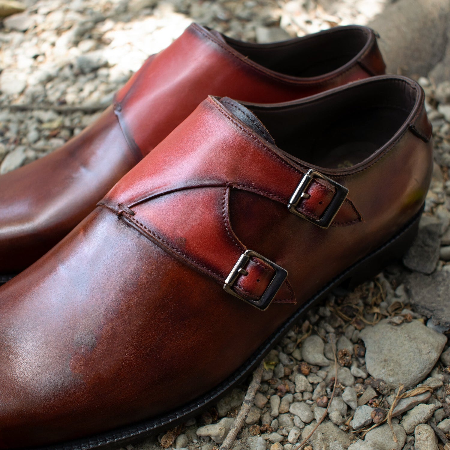 Brown Leather Hartlepool Monk Strap Shoes