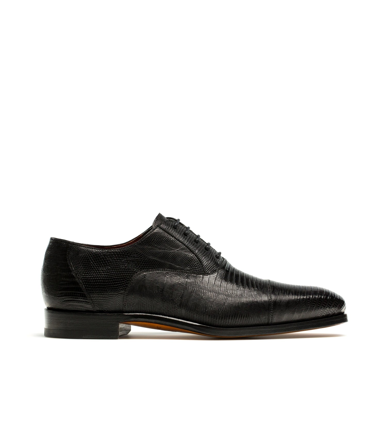 Flat Feet Shoes - Goodyear Welted Lamego Black Leather Croc Print Oxford With Violin Leather Sole with Arch Support