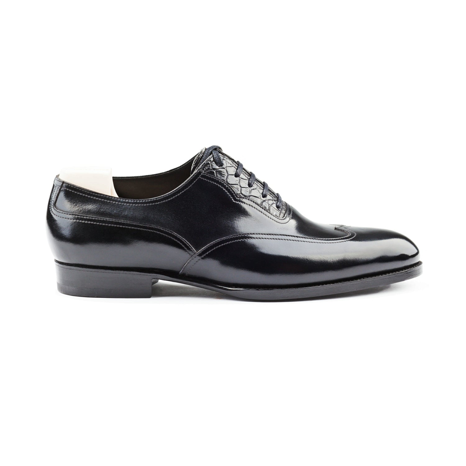 Height Increasing Goodyear Welted Moncorvo Black Leather Croc Print Oxford With Violin Leather Sole