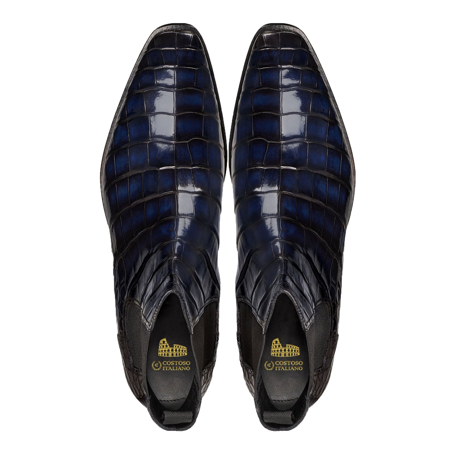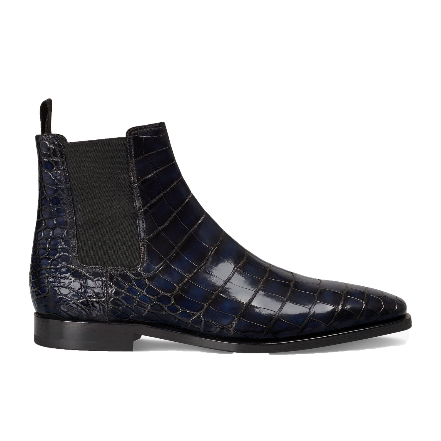 Navy Blue Alligator Textured Leather Evington Chelsea Slip On Boots