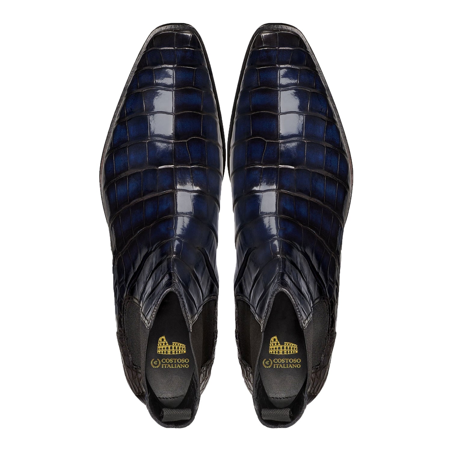 Height Increasing Navy Blue Alligator Textured Leather Evington Chelsea Slip On Boots