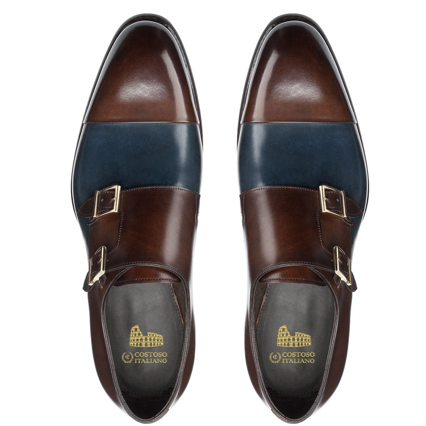 Flat Feet Shoes - Navy Blue and Brown Leather Castle Monk Straps with Arch Support