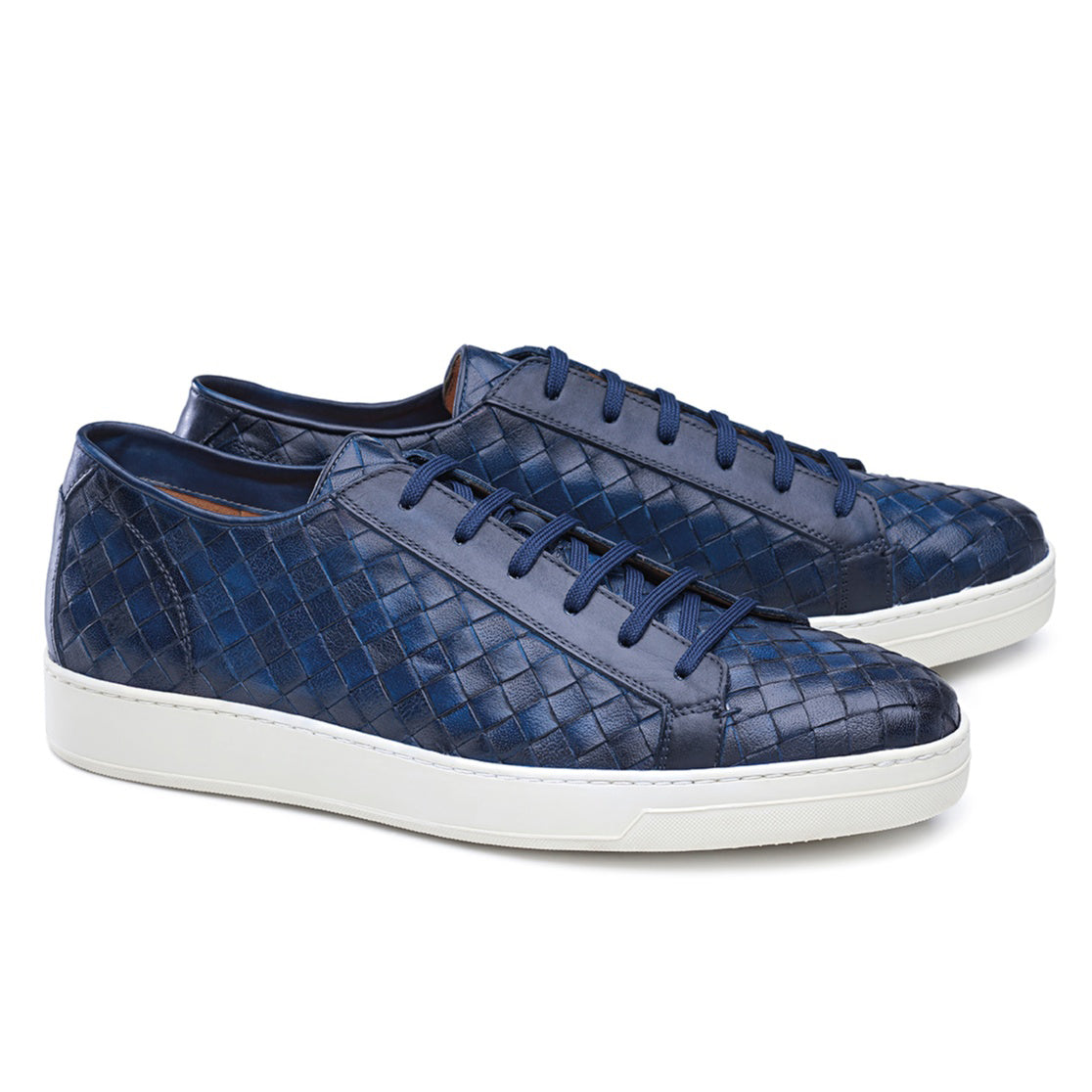 Navy Blue Braided Leather Cornella Lace Up Sneakers