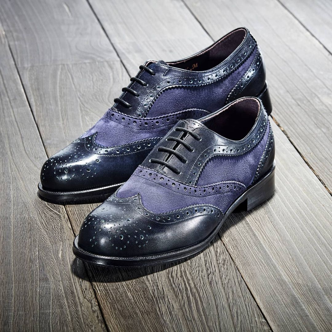 Navy Blue Leather and Purple Suede Melville Brogue Oxford Shoes