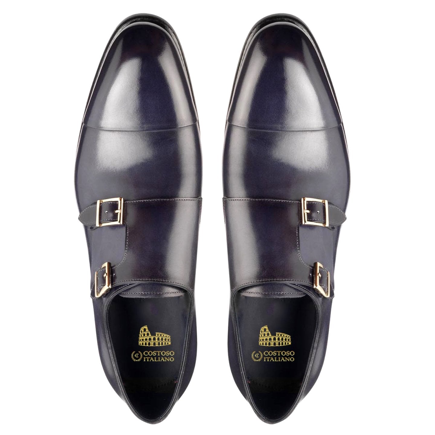 Flat Feet Shoes - Navy Blue Leather Castle Monk Straps with Arch Support
