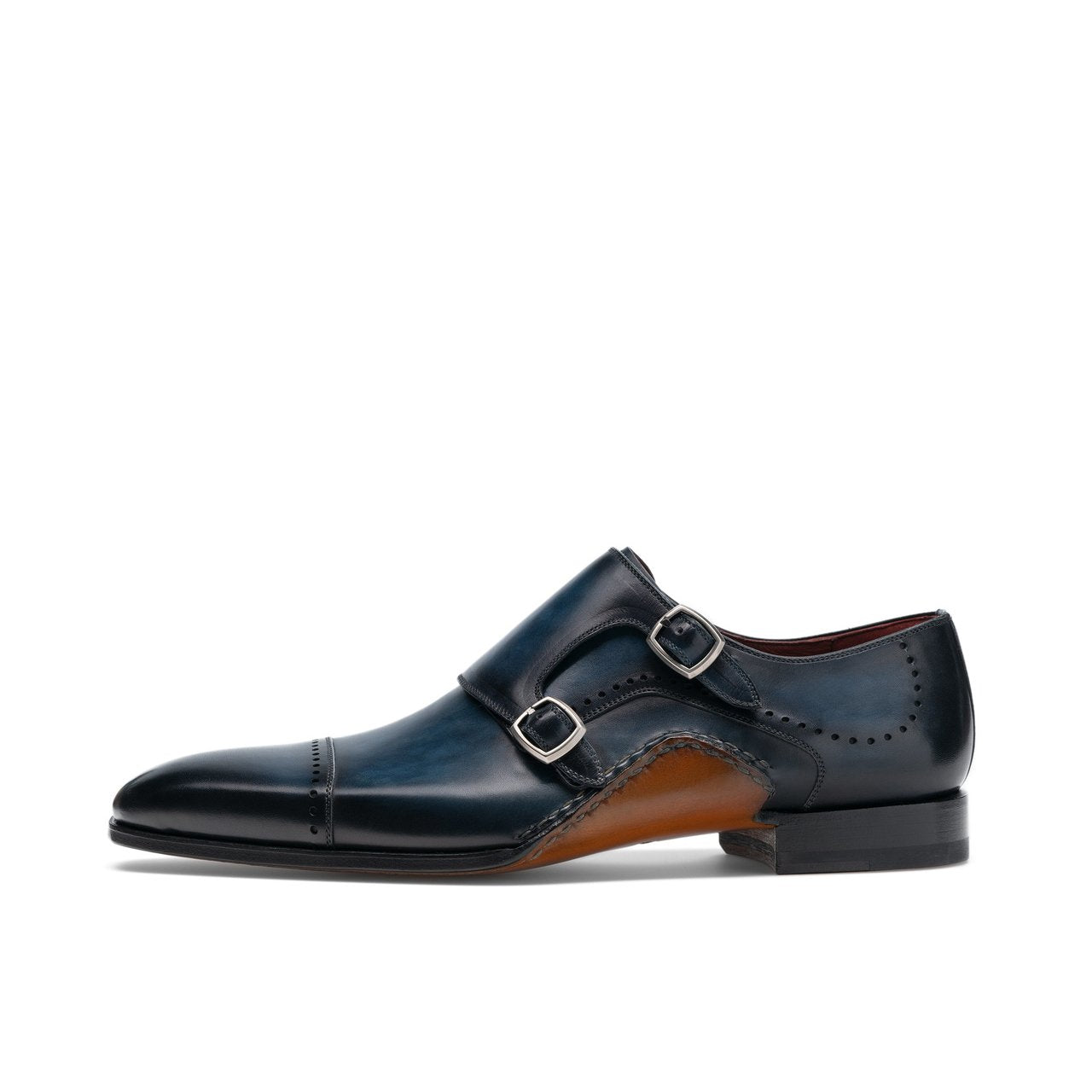 Flat Feet Shoes - Navy Blue Leather Victoria Monk Strap Shoes with Arch Support