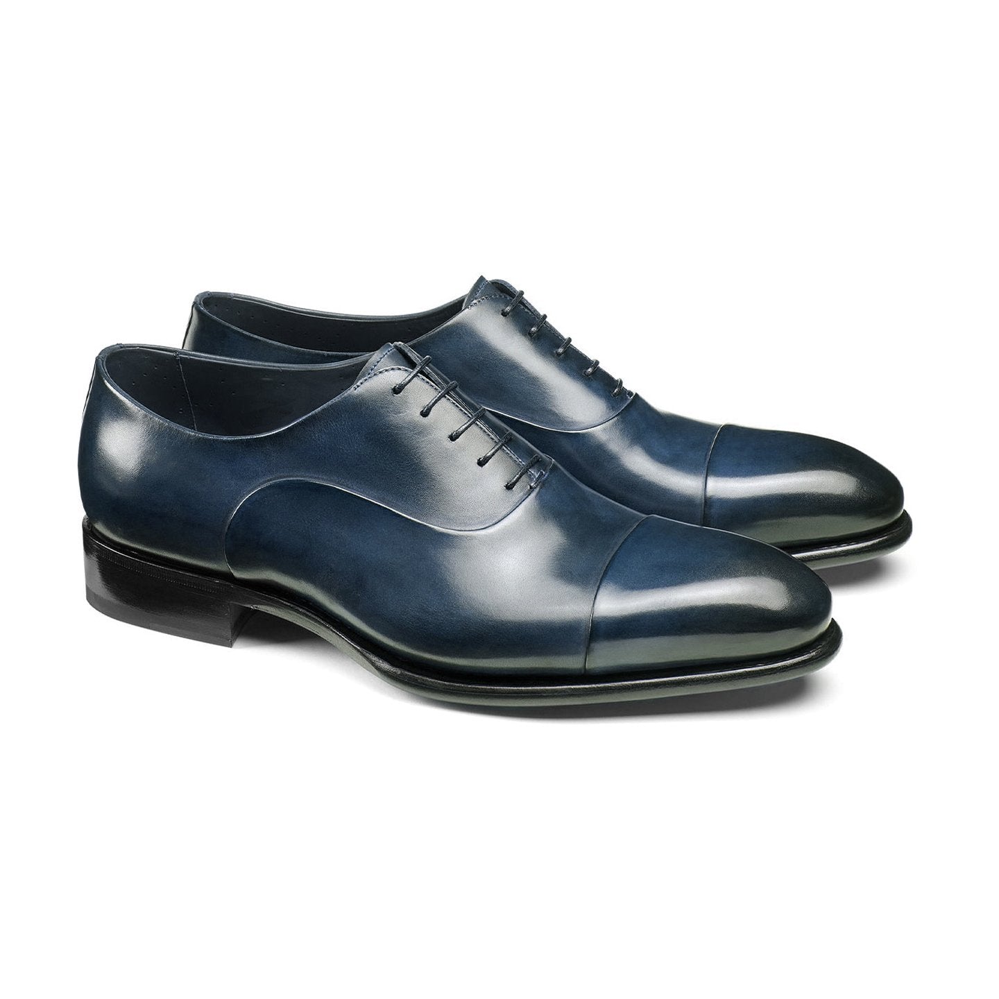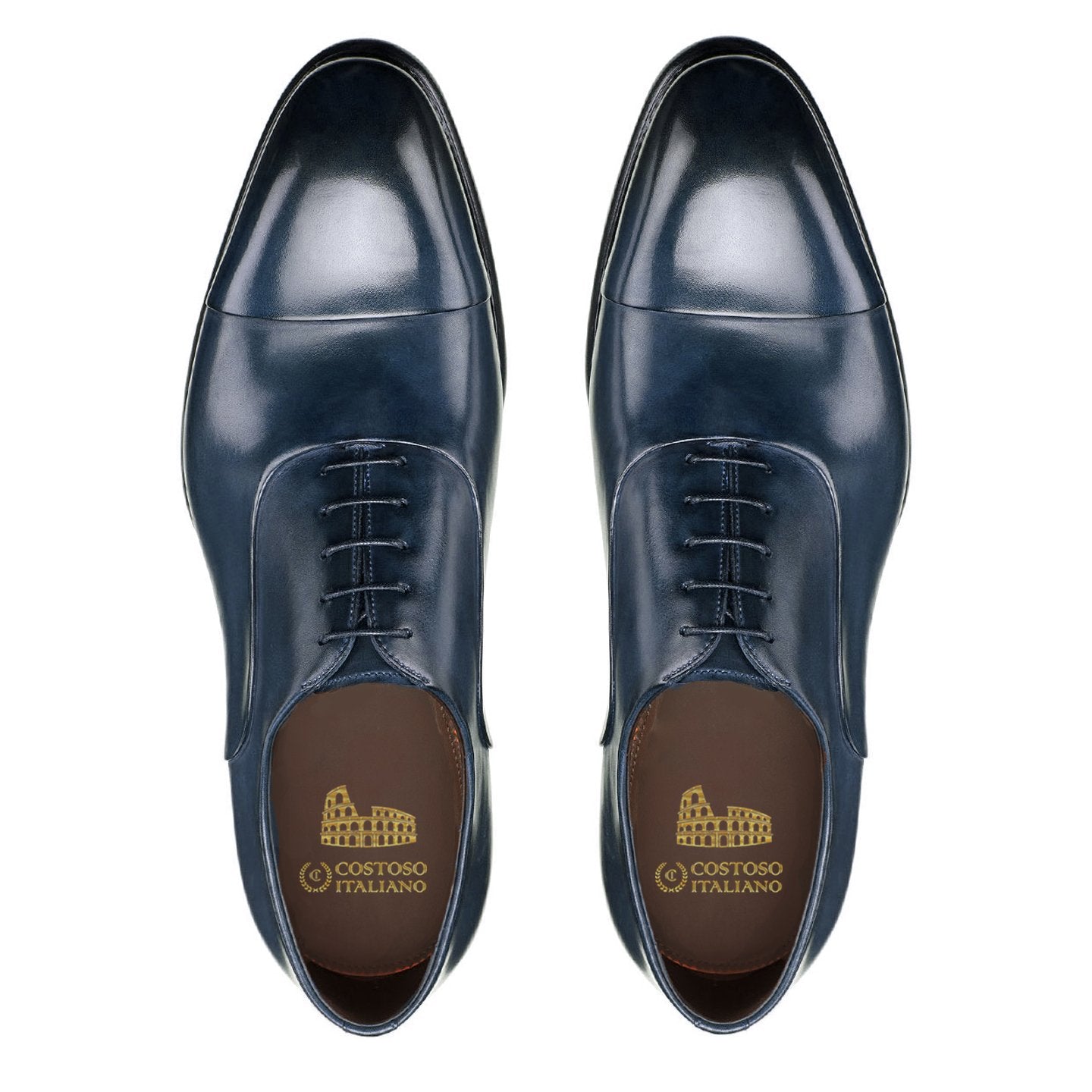 Flat Feet Shoes - Navy Blue Leather Woodford Balmoral Toe Cap Oxfords with Arch Support