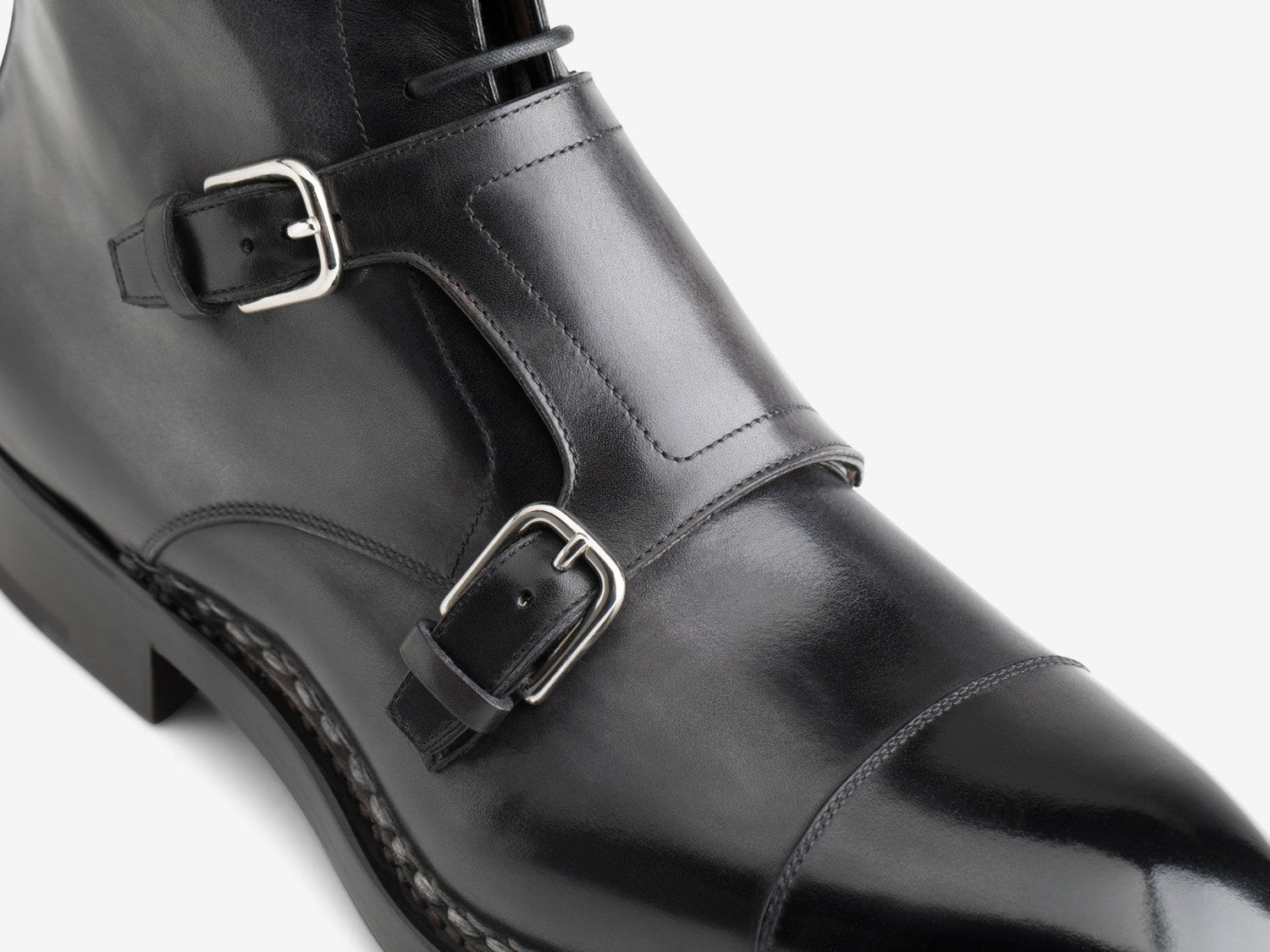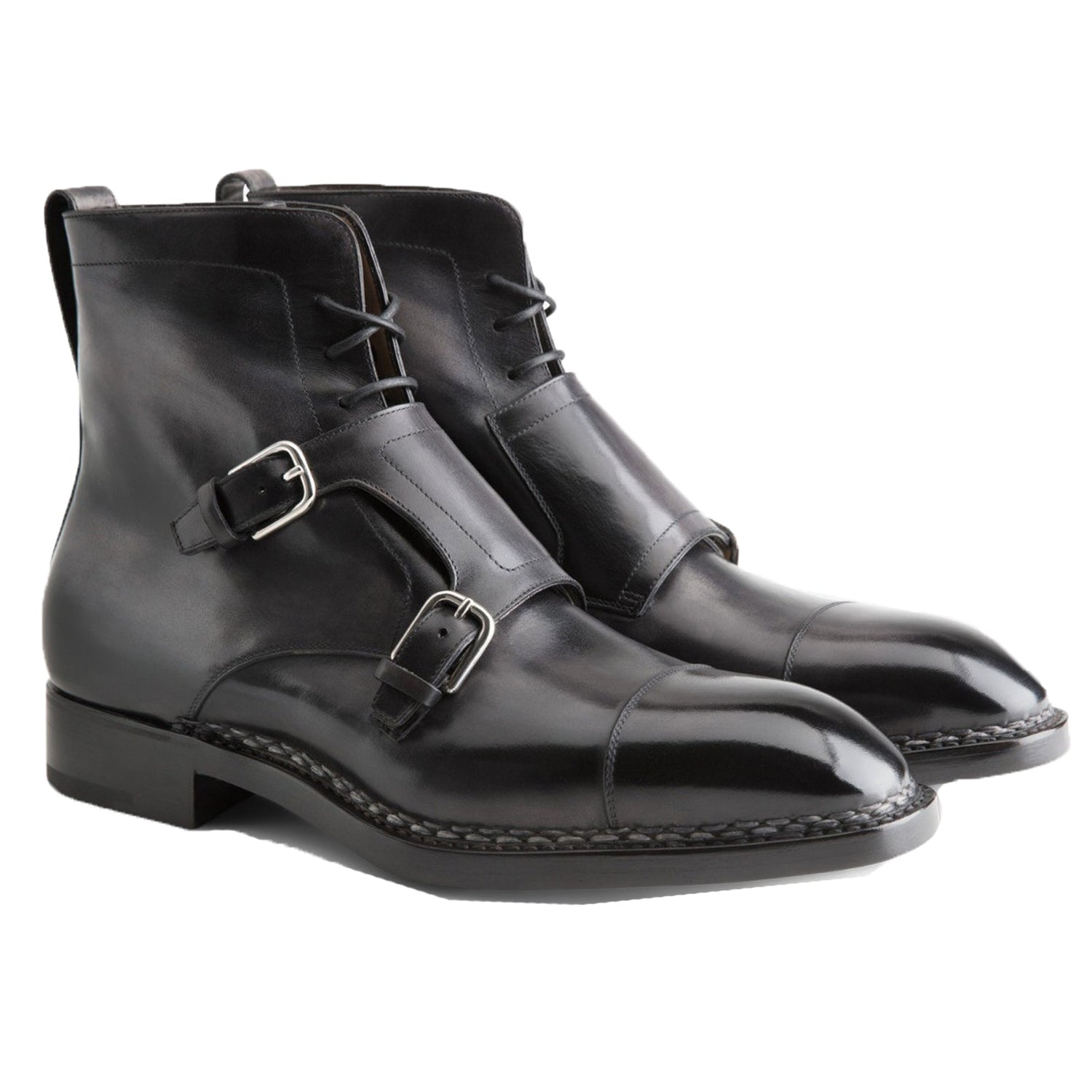 Norwegian Welted Mafra Black Leather Double Monk Strap Oxford Boot