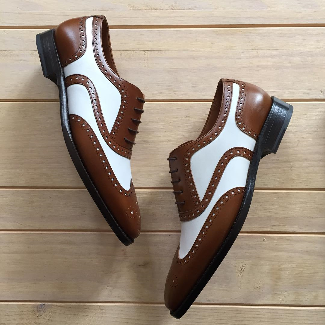 Tan and White Leather Lamego Brogue Oxfords - Formal Shoes