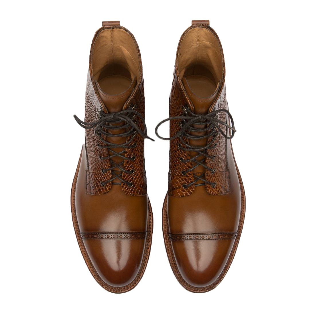 Flat Feet Shoes - Tan Alligator Textured Leather Furzton Lace Up Boots with Arch Support